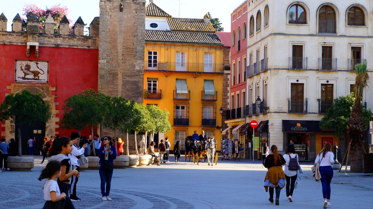在西班牙的旅途中,感觉地中海的阳光特别地明媚。在塞维利亚的老城区,古建筑的色彩艳丽,人们沐浴骄阳,历史风貌尽展眼前。在步行中避开闲杂人等,抓住醒目靓点,即时按扣快门。